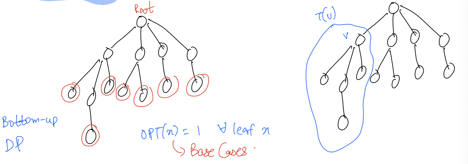 - If is not in the independent set, then (potentially) all of its children can be in the independent set