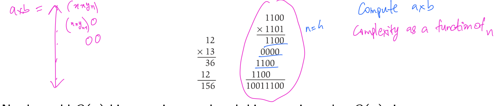 Need to add binary strings, and each binary string takes time to compute. Hence the total running time is