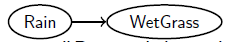 - Inference : From observations (e.g., “it’s cloudy”) infer the probability of the wet grass.