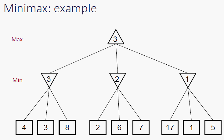 function minimax_value(state) returns its minimax value if state is a terminal state then return utility of the state if the agent to act in state is Max then return max_value(state) if the agent to act in state is Min then return min_value(state)