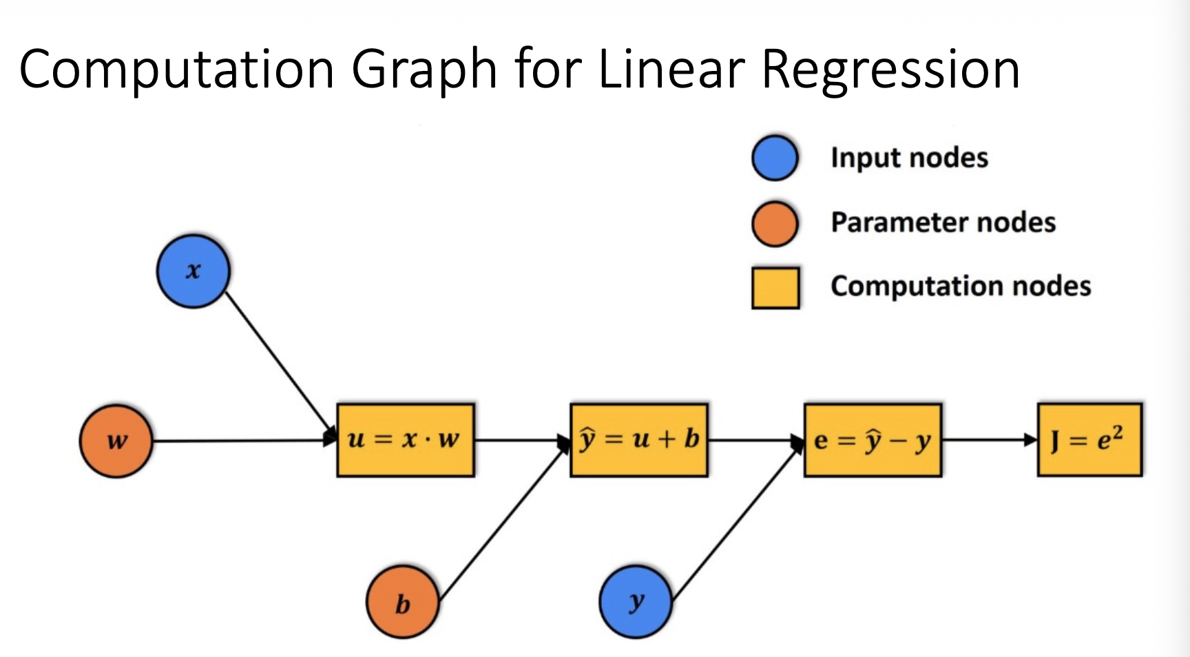 - Nodes Represent variables (inputs/ outputs) or intermediate results which are functions of their predecessors.