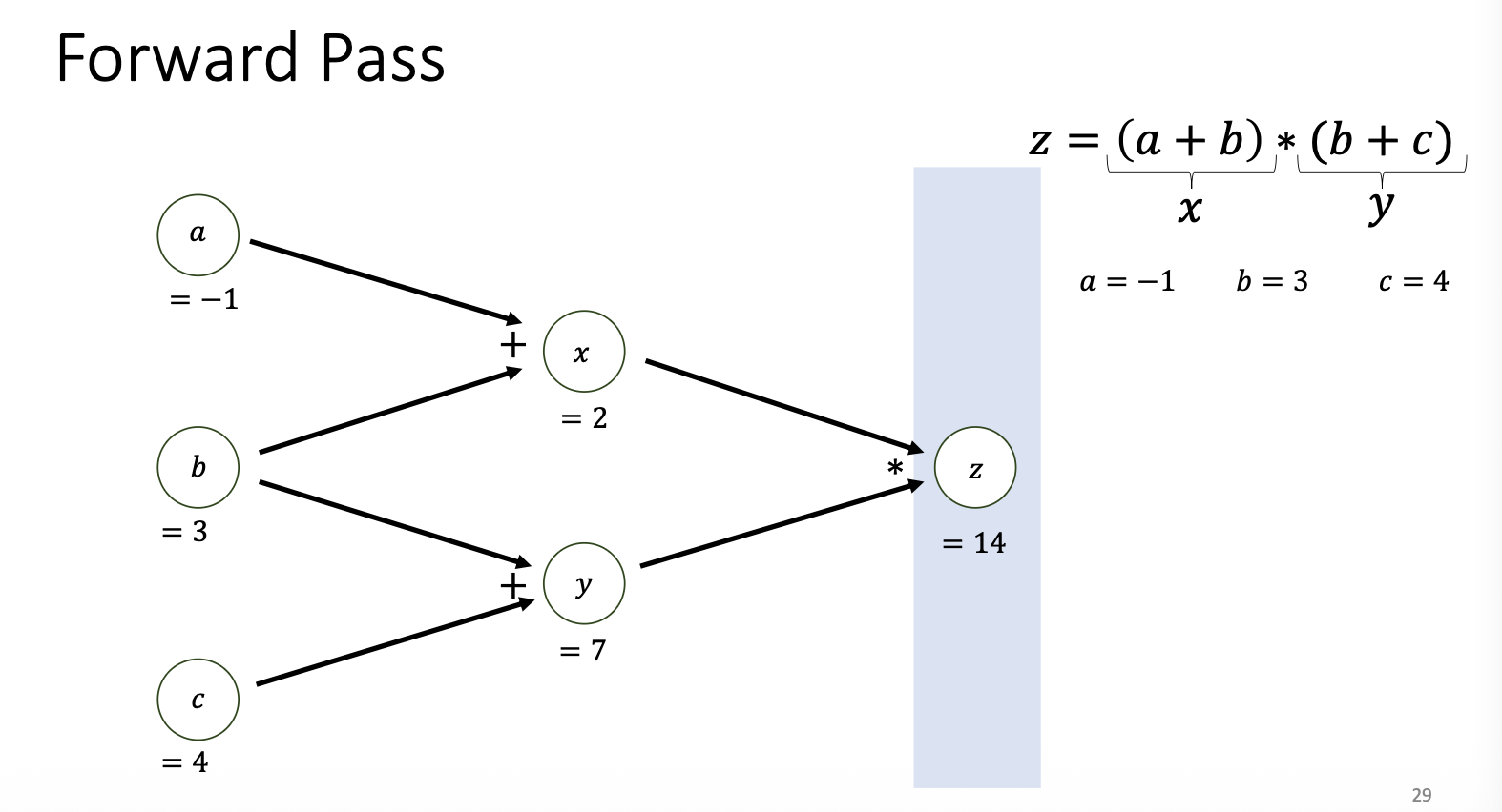 - Forward Pass: Move forward through the graph to compute all intermediate results and the final loss.