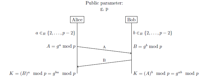 ga mod p and gb mod p can be called public keys. The secrets a and b are private keys.