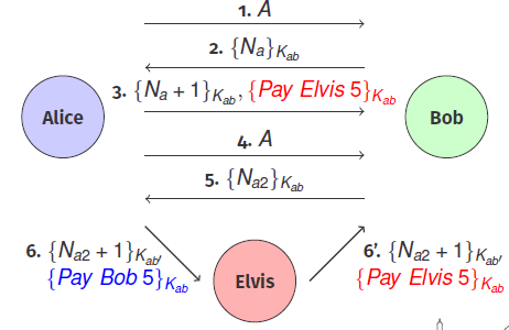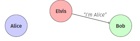 where E(A) means Elvis is impersonating Alice.