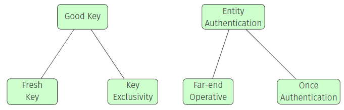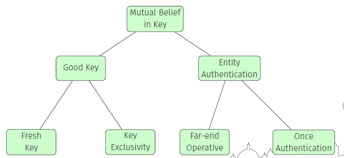 A protocol provides Mutual Belief in a key for Alice with respect to Bob if, after running the protocol, Bob can be sure that :